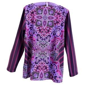 Bob Mackie Purple Paisley Striped Sleeve Top size Small