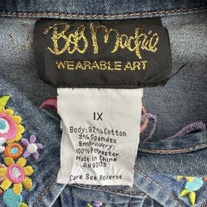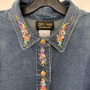 Bob Mackie Shirt Womens 1X Denim Embroidered Maypole Spring Button Floral Art To