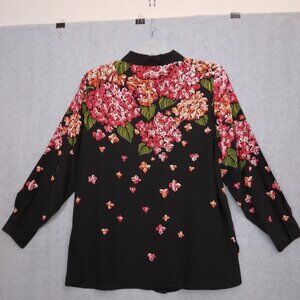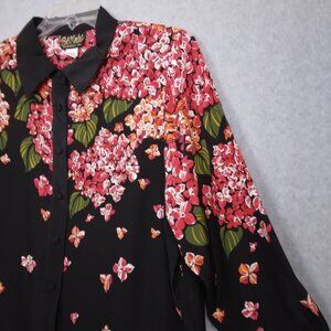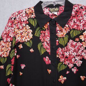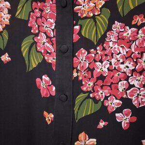 Bob Mackie | Silk Floral Beaded Button Up Blouse Black Red | Size L