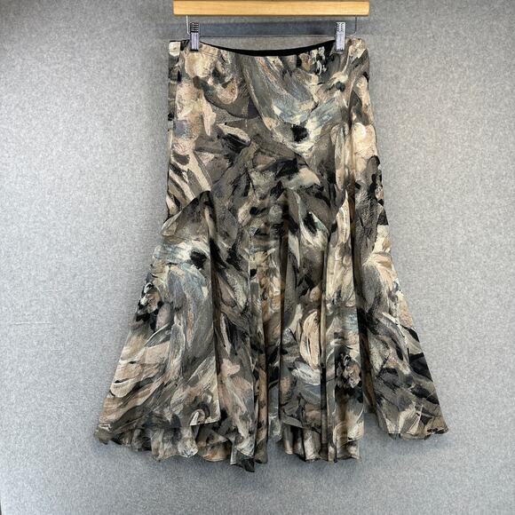 Bob Mackie Skirt Womens Size M Neutral Multi Floral Print Pull-On Woven Pleated