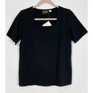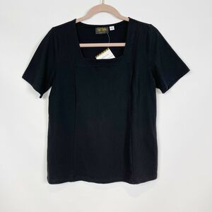 Bob Mackie Womens Square Neck Short Sleeve Knit Top Small Black