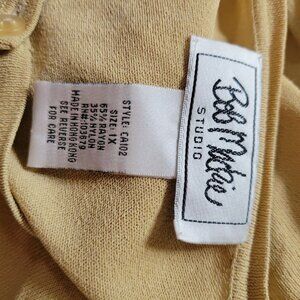 This cardigan sweater by Bob Mackie Studio features a sophisticated sequin embellishment design on the lower half. Made with a blend of rayon and nylon, it offers both comfort and style, suitable for professional settings. The cardigan's beige color provides a versatile and timeless look, ideal for layering.