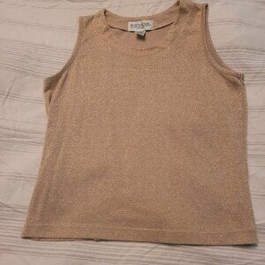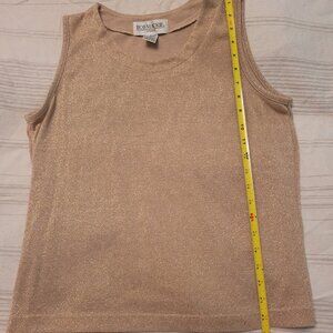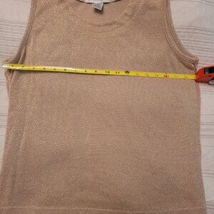 Gold metallic sleeveless top size large 50 Polyester, 26 cotton and 24 percent metallic. Please see measurements machine wash cold.