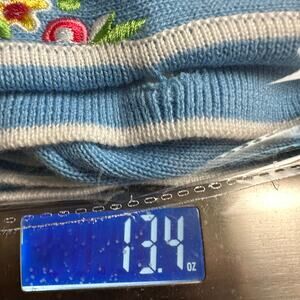 Bob Mackie Sweater Womens XL Blue Fruit Floral Embroidered Cardigan Artsy Preppy