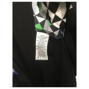 Bob Mackie Tow Women's 2X Asymmetrical Drape Geometric Drape Black, Cobalt Blue and Hunter Green Multi.
