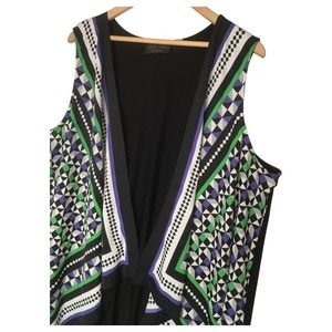 Wearable art. Open front asymmetrical vest style. Geometric print.