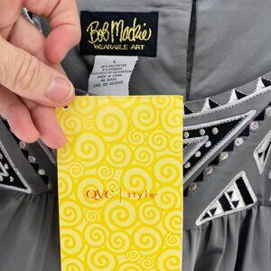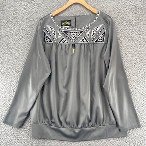 Bob Mackie Top Womens Large Gray Satin Wearable Art Embroidered Long Sleeve NWT