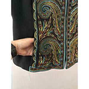 Bob Mackie Vest Zip Up Embroidered Colorful Boho Art to Wear Artsy Black Medium