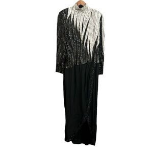 Bob Mackie Vintage Heavily Beaded & Sequin Black & Silver Stunning Dramatic Gown
