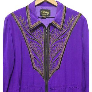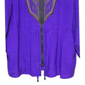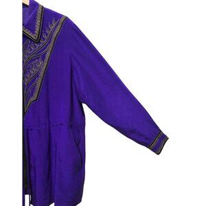 Bob Mackie Vintage Purple Silk Embroidered Zippered Light weight Jacket Sz M