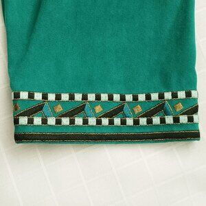 This Bob Mackie vintage Wearable Art zippered jacket is beautifully embellished with embroidery and gold thread. Slit pockets in front, Nehru collar, long sleeves.