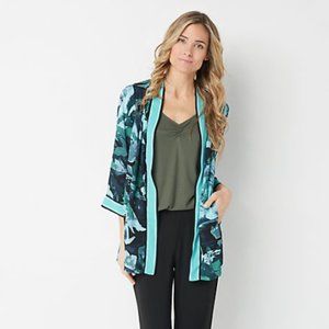 Bob Mackie Watercolor Rose Printed Woven Cardigan