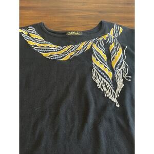 Bob Mackie Wearable Art Beaded Embroidered Scarf On Black Tunic Sweater Sz 2X