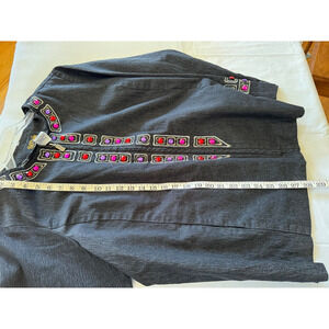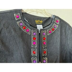 Bob Mackie Wearable Art Black Denim Zip Jacket 1X Purple Red Jeweled Embroidered