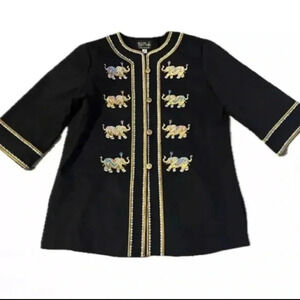 Bob Mackie Wearable Art Black Elephant Embroidered Jacket Size XL