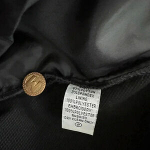 The solid pattern and polyester lining material make this jacket easy to maintain with dry cleaning only. It has accents of buttons. The wearable art is from the basic jacket style collection that features no mention of its new with tags condition. Buy now and sport a creative look!