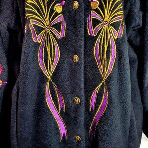 Bob Mackie Wearable Art Black Floral Embroidered Button-Up Soft Fluffy Coat 1X