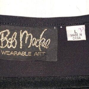 Bob Mackie Wearable Art Black Sleeveless Top W/ Silver Stripe Detail Womens L Po