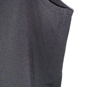 This sleeveless black top features a striking silver stripe detail, offering a stylish and modern look. Crafted for comfort and durability with a polyester-spandex blend.