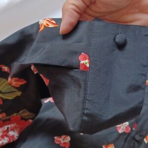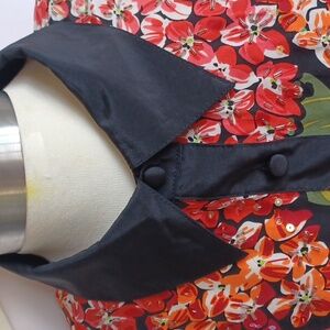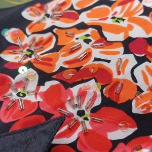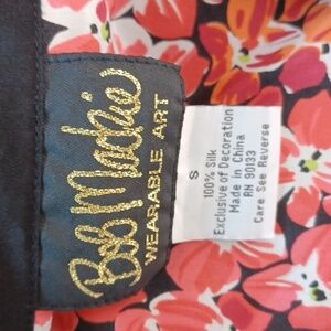 Bob Mackie Wearable Art Black/Pink Floral 100% Silk Top, Sequins, 21" PTP, 28" L