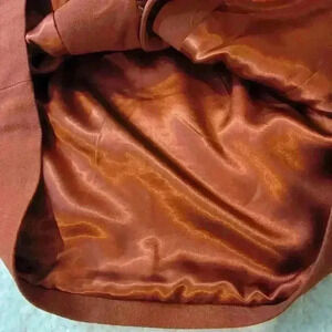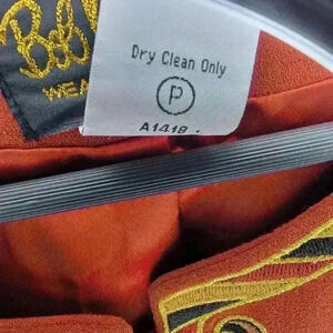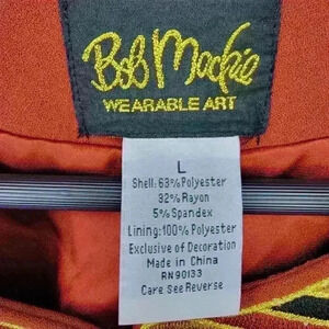 Elevate your wardrobe with this stunning Bob Mackie Wearable Art Blazer Jacket. The jacket features a terricotta orange color with an embroidered damask pattern that adds a touch of art and design to your outfit. It is made of polyester with a pique fabric type and a classic fit that is perfect for any occasion, whether it's casual or formal. The blazer has a button closure, collarless design, and long sleeves that make it suitable for all seasons. It also comes with pockets for convenience. The jacket is hand wash only and is available in a women's size L. This blazer is perfect for anyone who wants to stand out with a unique and stylish piece.