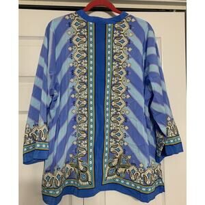 Bob Mackie Wearable Art Bombay Placement Print Button Front Shirt 2X Blue Multi