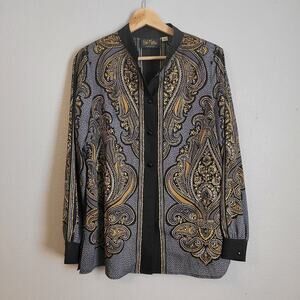 Bob Mackie Wearable Art Button Down Top Womens M Multicolor Floral Pattern