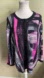 Bob Mackie Wearable Art Button Front Sweater Black Pink Purple Cardigan, size 2x