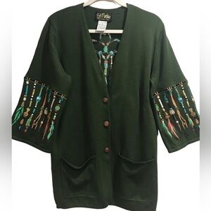 Bob Mackie Wearable Art Cardigan Sweater Embroidered Feather Detail Woman’s Med