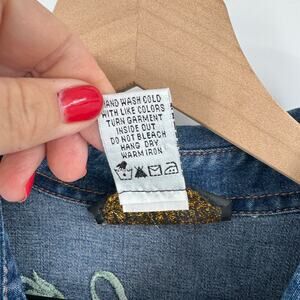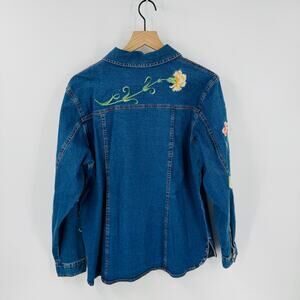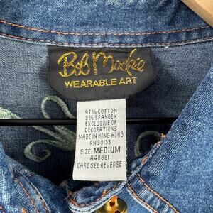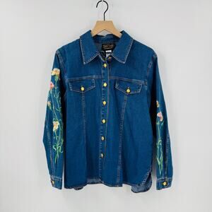 Bob Mackie Wearable Art Denim Shirt Jacket Embroidered Floral Size M Festival