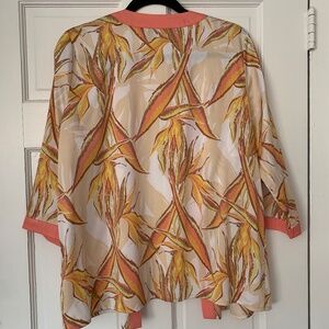 A Totally Tropical Print Design with a Fearless combination of coral, yellow, gold and rust tones. (Sorry, no red.)