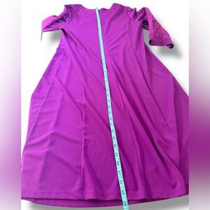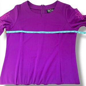 Bob Mackie Wearable Art Dress Purple Embroidered Floral Y-Neck Dress Sz M