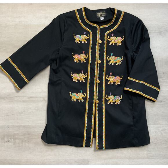 Bob Mackie Wearable Art Embroidered Elephant Jacket Womens Medium