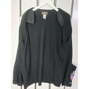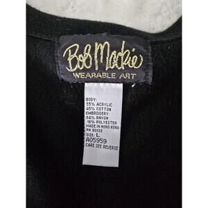 Bob Mackie Wearable Art Floral Embroidered Black Cardigan Jacket L Granny Mature