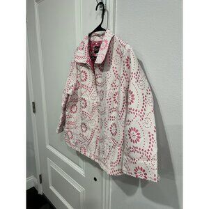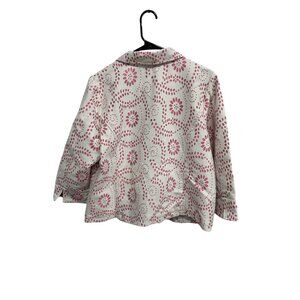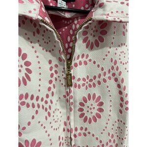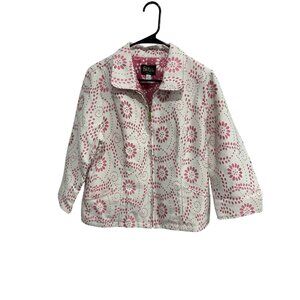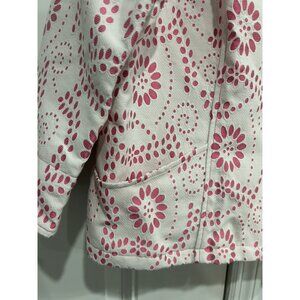 Bob Mackie Wearable Art Floral Full Zip Jacket Pink White Sz Large Feminine Boho