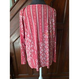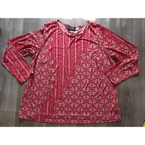Bob Mackie Wearable Art Floral Pattern Red & Pink Long Sleeve Top Size 1X