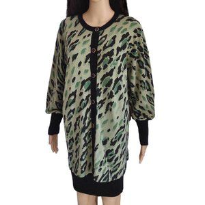 Bob Mackie Wearable Art Green Leopard Camoflauge Cardigan Sweater S