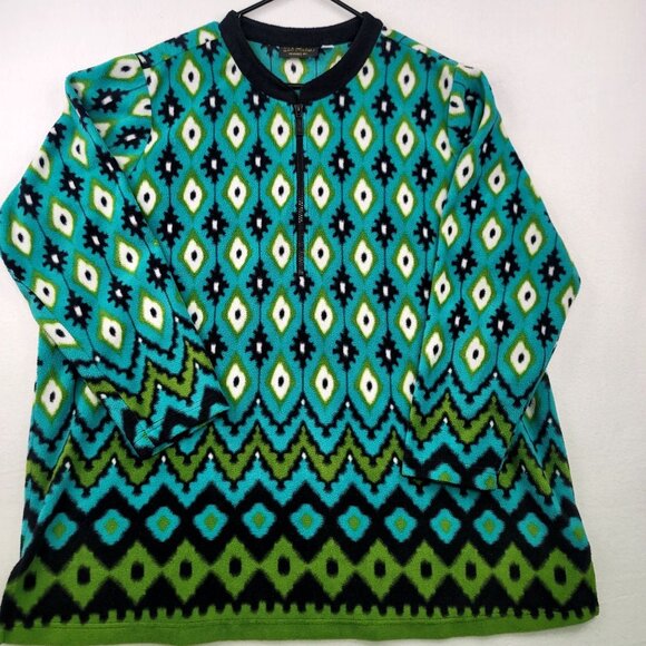 Bob Mackie Wearable Art Green Teal Geometric Fleece Pullover Sweater 2X