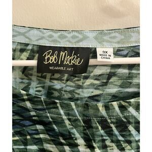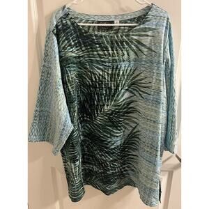 Bob Mackie Wearable Art Green/Blue Palm Leaf Print 3/4 Sleeve Tunic Top SIZE 3X