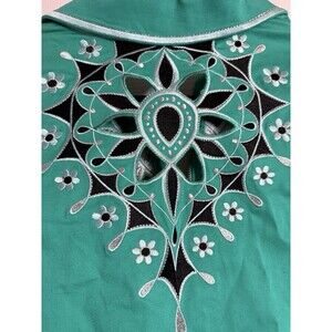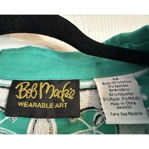 The Bob Mackie Wearable Art Jacket is a stunning piece featuring a 3D floral design with embroidered cutouts, creating a unique and visually striking look. This short-length blazer jacket in a vibrant green color is made from a comfortable cotton blend fabric, making it perfect for travel, parties, or casual outings. The 3/4 sleeves and full zip closure add practicality to this artistic and vintage-inspired piece, which is sure to make a statement in any wardrobe. Perfect for spring, summer, or fall, this jacket is a versatile and stylish addition for women who appreciate artistry in their clothing choices. Dopamine Dressing
