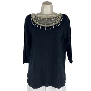 Bob Mackie Wearable Art Mesh Jeweled Artsy Sweater Black Size S