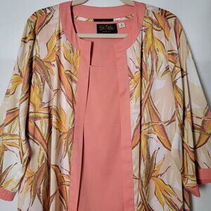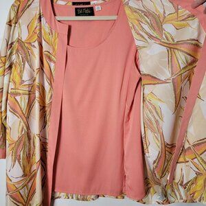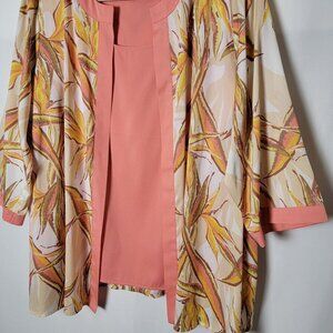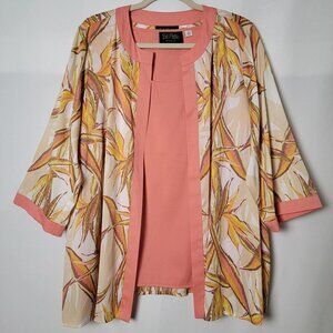 Bob Mackie Wearable Art Peach Botanical Open Front Cardigan Kimono With Tank 1X