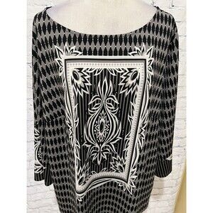 Bob Mackie Wearable Art Placed Print Knit Pullover Top Black White Plus Size 3X