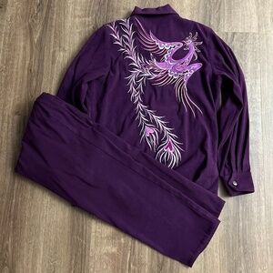 Bob Mackie Wearable Art purple firebird embroidered Jacket and pants set.