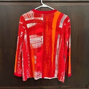 Bob Mackie Wearable Art Red Button Front Cardigan Sweater Medium