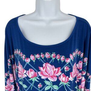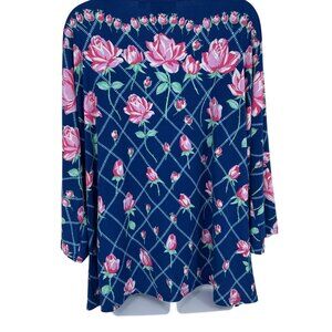 Bob Mackie Wearable Art Rose Trellis Print 3/4 Sleeves Knit Top Size XL