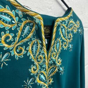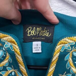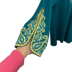 Bob Mackie Wearable Art S Teal Embroidered Long Sleeve Boho Luxe Artistic Top