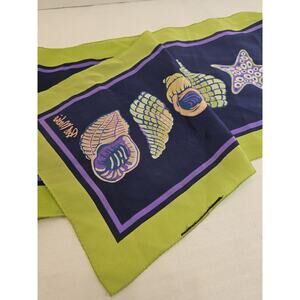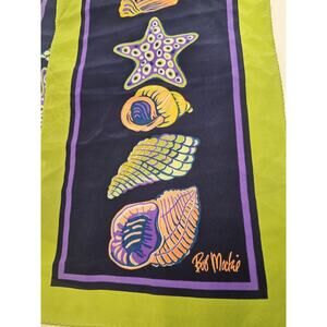Bob Mackie Wearable Art Scarf Silk Seashell Beach Colorful Rectangle 10x37 90s. From Interstate in St petersburg, florida. Scarf is in lovely pre-owned condition. No stains or tears. Bright colorful Coastal with a chartreuse green border and bright purples and salmon colored seashells. Please see photos for details, condition and measurements. Ask me any questions. I want you to love your purchase.