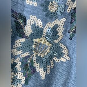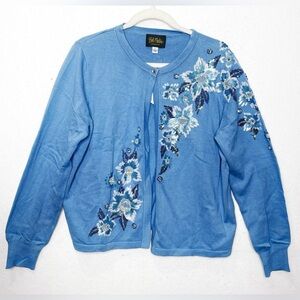Bob Mackie Wearable Art Sequin Beaded Rhinestone Blue Cardigan
