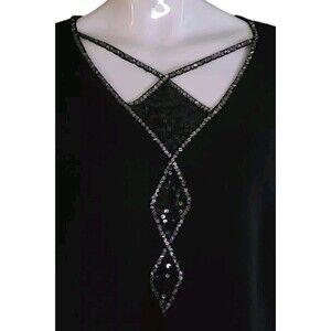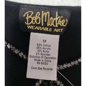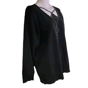 Bob Mackie Wearable Art Sweater Knit Top Women's 1X Black Embellished Beaded